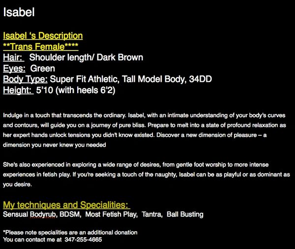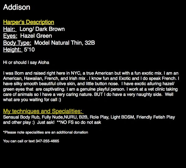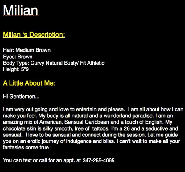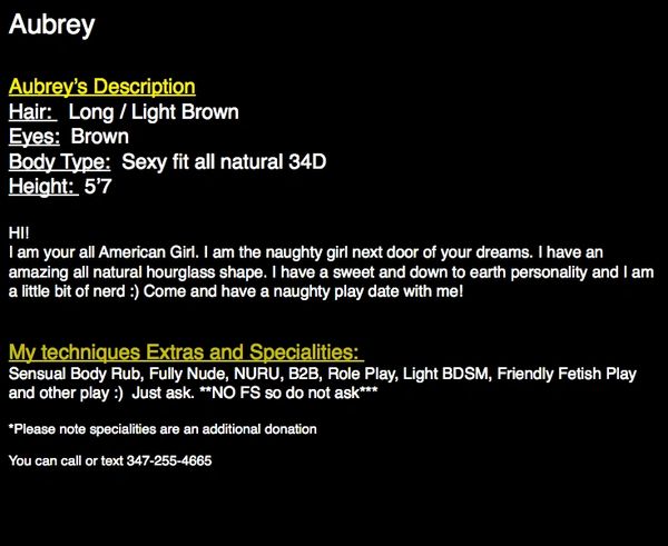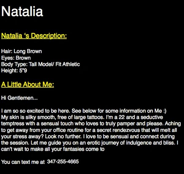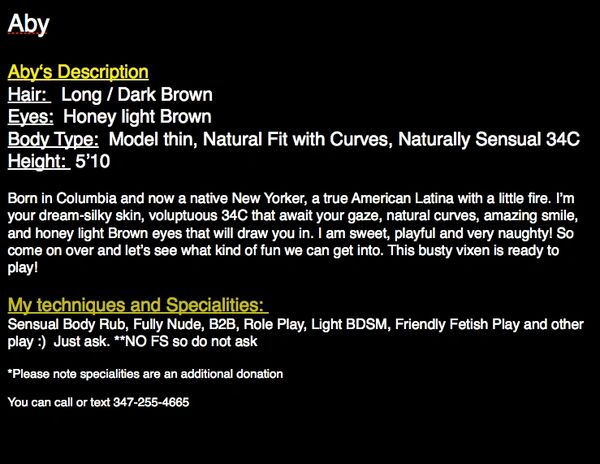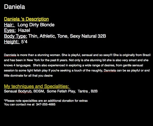 We are not like other body rub places. We take pride in our appearances and how we treat you. We care about your safety and being completely discreet with your encounter. Come see the difference. You can reach of the models on their personal numbers for your discreet call. You can also call our concierge service that can help you make the right appointment encounter for a very satisfying experience ! You can call 347-255-4665 Maria our expert happiness consultant.